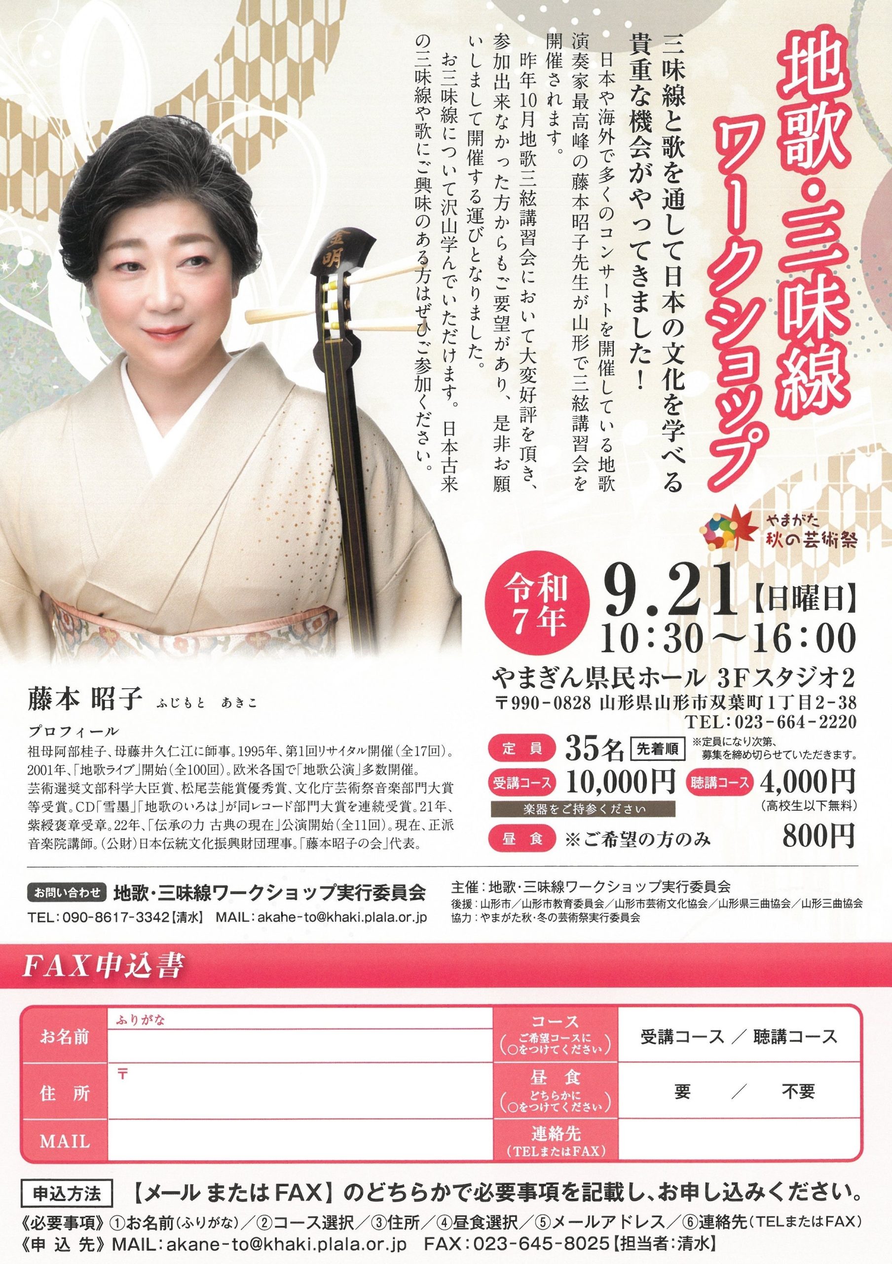申込先 メール:akane-to@khaki.plala.or.jp FAX:023-645-8025 【担当:清水】